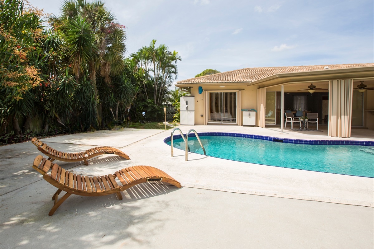 3 Bedrooms • 3 Bathrooms 3 Baths • Sleeps 1-8Welcome to your Beach Home Oasis! This beautiful private home has 3 spacious bedrooms, w/ 3 full baths & a huge chef's kitchen. TONS of outdoor space with large Heated Pool-Tiki bar, BBQ, outdoor dining, fire pit & comfy pool loungers. Large home sleeps up to 10! The Family neighborhood is just five minutes to Gorgeous Beaches & Downtown Lake Worth where there are fantastic eateries, shops and parks! This is Paradise! Enjoy tropical sunsets and local fruit trees.