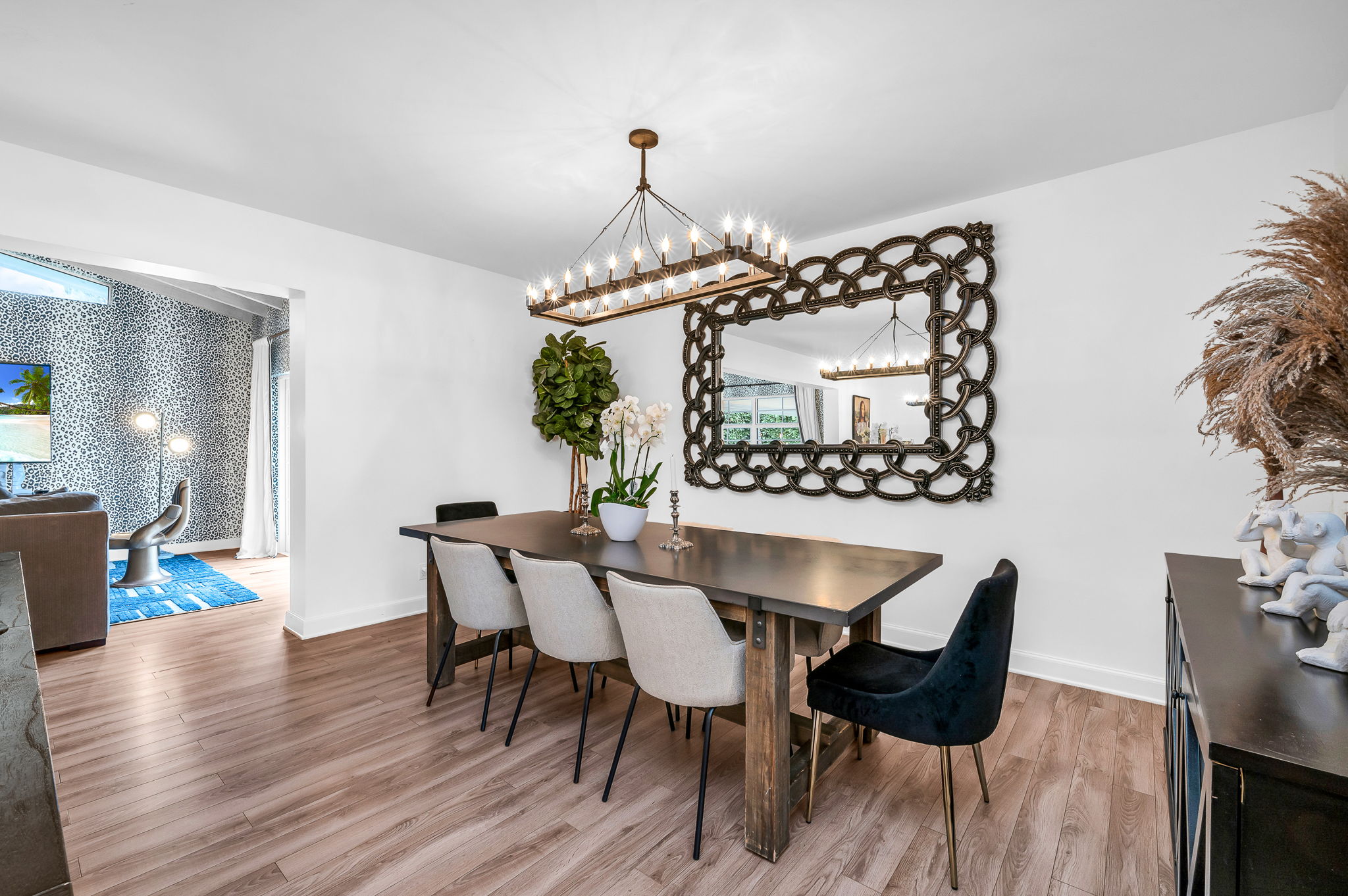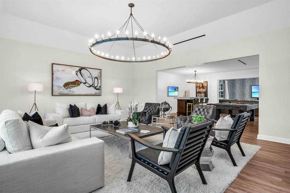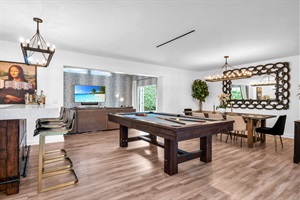 3 Bedrooms • 3 Bathrooms 3 Baths • Sleeps 1-8Island Bliss Manor offers an exclusive escape, set within the prestigious enclave of Palm Beach Island. This luxurious estate invites guests into an expansive, bright space, thoughtfully designed with high-end finishes and unique jungle-inspired accents, combining sophistication with the tranquility of nature. The open-concept layout features sumptuous furnishings, plush bedding, and a full-sized pool table for entertainment.