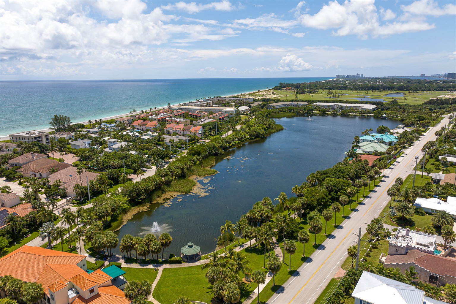 2 Bedrooms • 2 Bathrooms 2 Baths • Sleeps 1-6Located directly on the old Juno Beach Pier Access, also known as Pierless Beach. This gorgeous 2br condo is newly furnished with amazing decor and is in the absolute best location of Juno Beach. The water access is less than 100 feet from the soft sands and sparkling waters of the Atlantic Ocean. Wake up to beautiful sunrises over the turquoise ocean water! Coastal California meets tropical Florida in this modern luxury stay. The condo is on the 2nd floor, up one flight of stairs, and has a private balcony with a partial ocean view. There are 2 spacious bedrooms, both with private en-suite bathrooms; an exquisite, fully equipped kitchen with all new features and fixtures; a beautifully designed living room; and ample dining areas. Just a couple of steps to the alluring beach, and to Pelican Lake, which has a beautiful park and is surrounded by sidewalks and gazebos.
