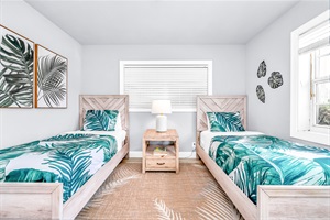 - Twin Bedroom: Designed with kids or additional guests in mind, this room features two twin beds and bright palm tree decor.