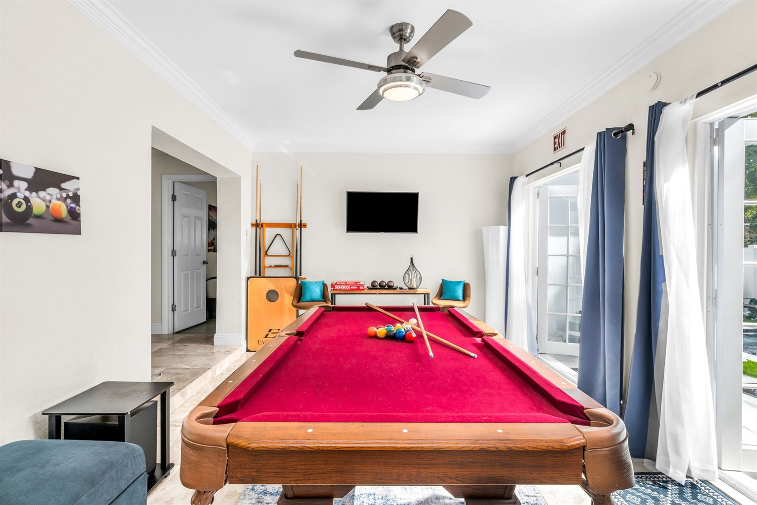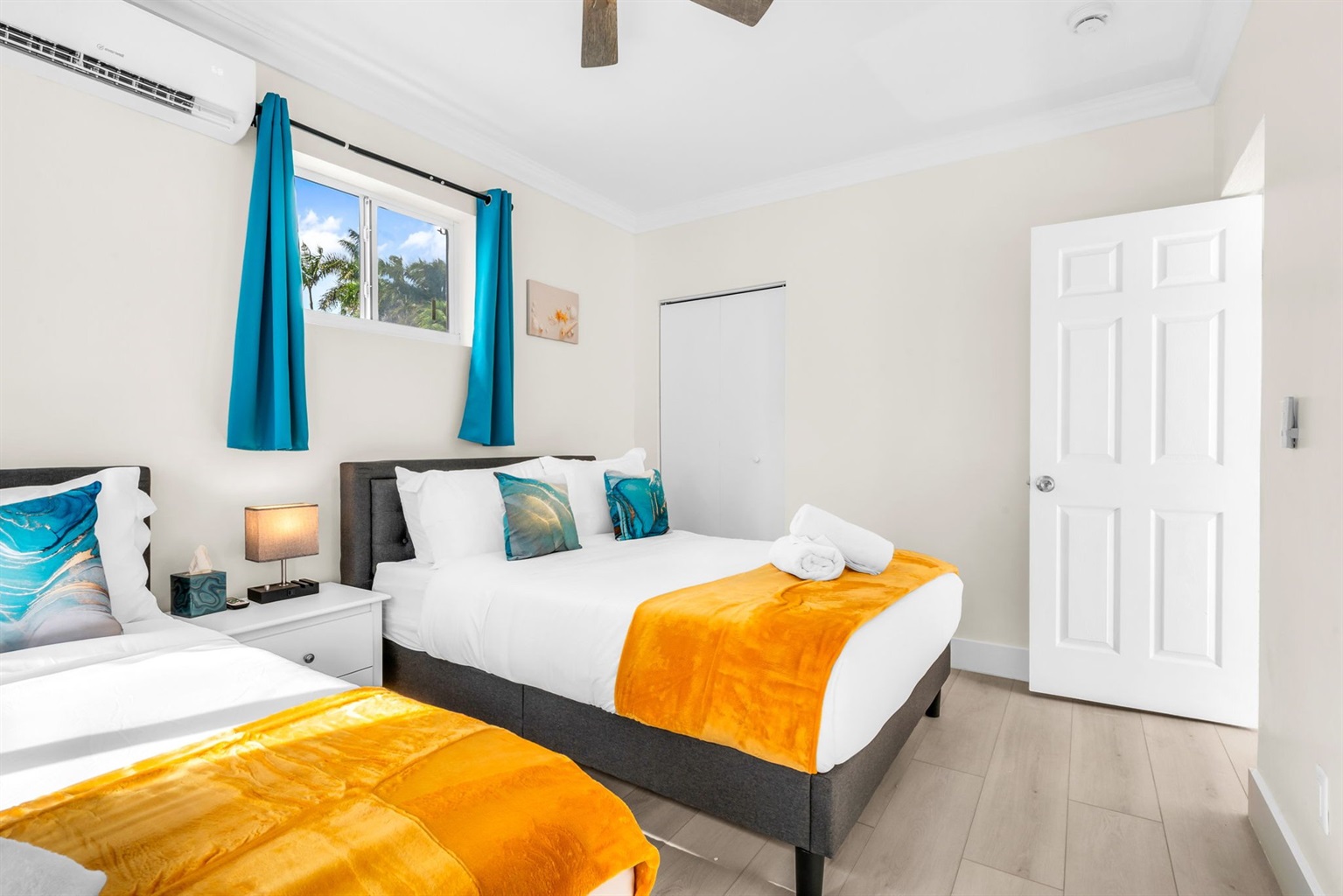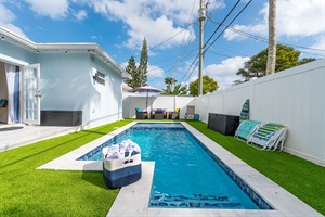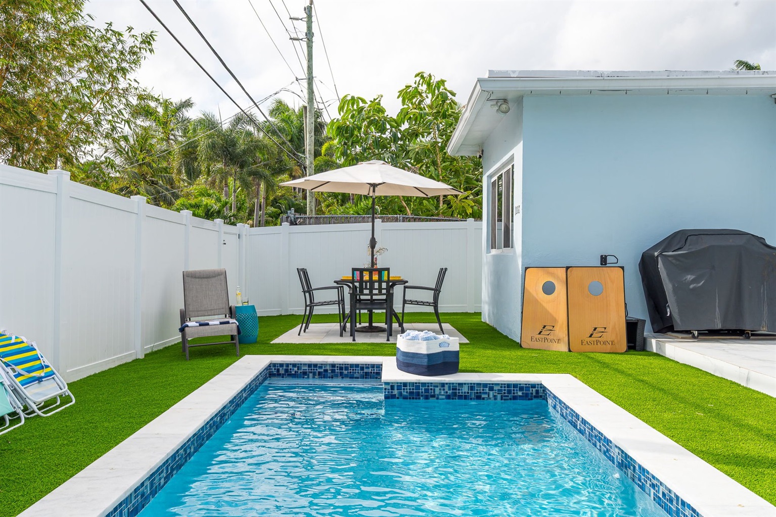 Relax in your private backyard oasis with a brand-new heated pool, jacuzzi, BBQ grill, string-lit patio, and cozy gas firepit lounge. With endless entertainment options—Cornhole, billiards, board games, mini putting green, and full beach gear—this home is the perfect hub for your South Florida vacation.