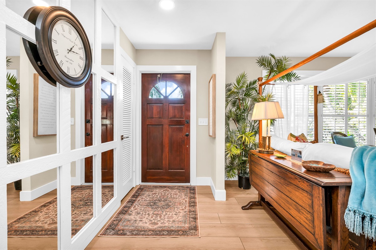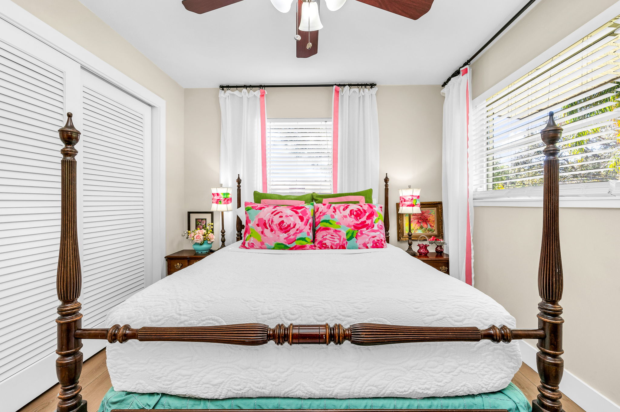 The third bedroom also has a unique 4- poster Queen size bed and a tropical island décor and antique dresser.